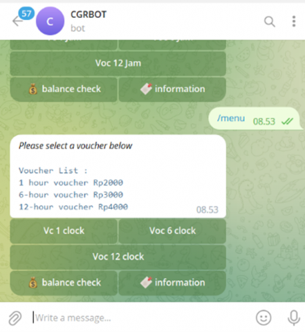User responsiveness tends to increase when notifications are delivered via platforms in active use, such as instant messaging applications [13]. Hence, the utilization of Telegram bots in this study is expected to boost user engagement by delivering Wi-Fi voucher notifications through extensively used and interactive platforms [14, 15].