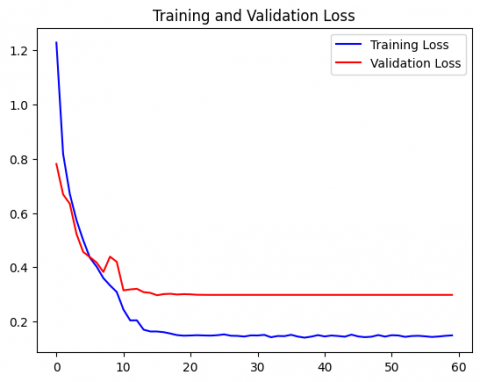 Figure 11 illustrates the training and validation loss curves over 60 epochs. In the initial training phase (0-10 epochs), Both training and validation loss decrease rapidly, reflecting effective learning and error reduction. Slight fluctuations in validation loss are expected as the model fine-tunes its parameters. In the middle training phase (10-20 epochs), Training loss continues to decline and stabilizes around the 20th epoch. Validation loss also decreases but remains slightly higher than training loss, indicating a small generalization error. In the later training phase (20-60 epochs), training loss plateaus at a low value, showing minimized error on the training set. Validation loss remains stable and consistently higher than training loss, indicating good generalization and minimal overfitting.