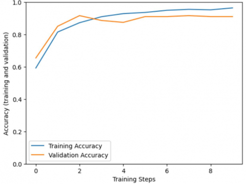 Figure 8. (a, c) accuracy and loss of mobilenet_v2_224 model with conventional augmentation, (b, d) accuracy and loss with StyleGAN2_ADA