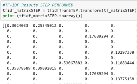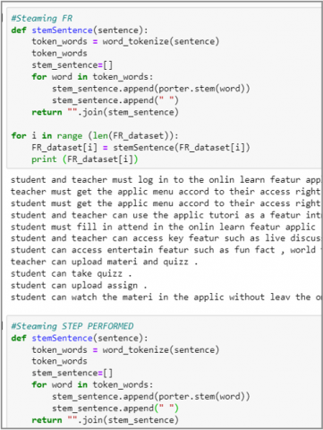 Based on the results of indexing stemming from the tokenization process, the following process is to transform into a TF-IDF matrix on all documents. For snippets of the results of TF-IDF on Functional Requirements and TF-IDF on Step Performed, see Figure 7.