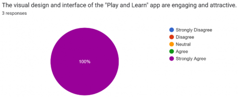 These survey findings, characterized by unanimous agreement, serve as a robust affirmation of the "Play and Learn" app's ability to provide a universally immersive and engaging learning experience for all participants. The positive feedback received from the survey participants further solidifies the app's standing as a well-received and impactful educational tool, resonating positively with its diverse user base.