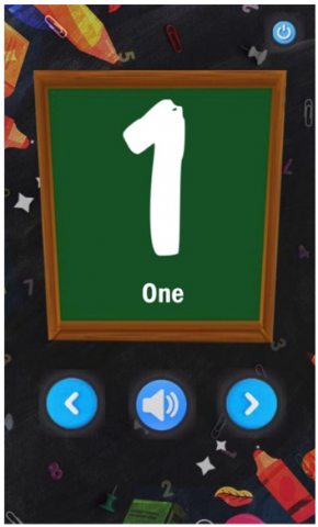 Similarly the Numbers Page Layout extends this user centric approach to numerical concepts as shown in Figure 8. Each number is introduced one digit at a time. Visual representation, word association (e.g. “ONE”) and audio pronunciation make the learning environment more rich and multi-sensory. The navigation buttons are seamless and makes learning smooth and easy to access to different modules in the app.