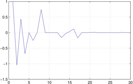 Figure 2 shows the sparse prediction coefficients and the sparse source signal of the same voiced frame. These vectors are about only 40% sparse level (only 40% of its data are non-zero values).