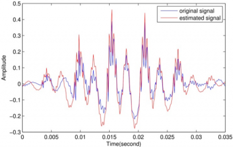 Figure 6. The original and the estimated signal out of sparse source and envelope coefficients using LASSO technique