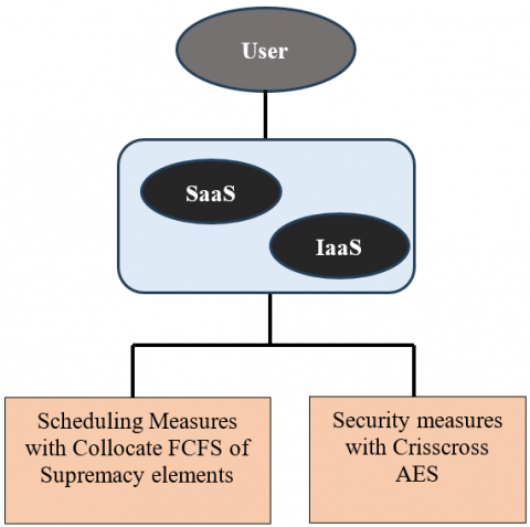 The enhanced AES is applied in a grid fashion in the proposed crisscross AES method. AES, the proposed crisscross technique, is a ten-round, four-level combo. Three M-1s are included in the first level, three M-1s are included in the second round, and so on until the third level. All three levels are combined in the fourth round, which is then sent to the servers. In cloud computing, when the user accesses both IaaS and SaaS offerings, Figure 2 illustrates how ECAES is implemented. When it comes to user-related concerns, schedule, and safety are two of the cloud system's primary disadvantages. To solve this issue, a novel idea of combining FCFS of dominance components for scheduling purposes and Crisscross AES uses a crisscross conversion to reconstruct the normal AES state matrices. The change swaps components both row-wise and column-wise according to a hidden permutation variable π or a predetermined crisscross design. Unpredictability and resilience to cryptanalysis are increased as a result.