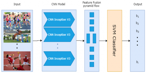 The Inception V3 framework of the training in CNN model was employed in this study. Inception V3 demonstrated its abilities as a model by earning the highest possible score learning the first place award. In addition, Inception V3 to timely saves for benefit of minimizing the number of fusion activities required for strongly interconnected nodes and being minimal. We improved Inception V3's top sports activity modules. The feature extractor then employed the whole network until Inception V3 global average pooling was accomplished. Inception V3's network topology is shown in Figure 4, where the feature extractor is fine-tuned.