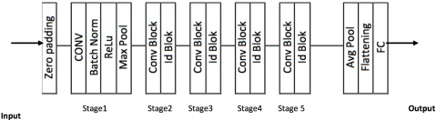 Figure 3. Architecture of a Residual Convolutional Neural Network (ResNet) with residual connections