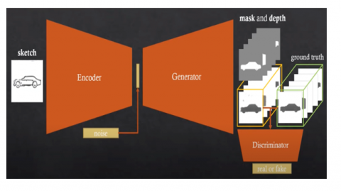 Figure 4. Process of reconstructing 3D shapes from a 2D sketch using a deep learning network based on GANs