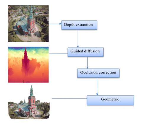 3. Third: A depth map produced from monocular depth estimate model predictions guides the diffusion process. This method guarantees proper reconstruction of blocked areas and correction of geometric distortions, so enhancing the basic 3D model.