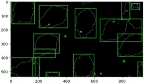 After obtaining the binary image, Region of Interest (ROI) detection is performed [28], this step is used to define specific areas within the digital image, ensuring that image processing is applied exclusively to the region identified as the chicken. ROI detection also helps to minimize noise, thereby improving the accuracy of the analysis [29]. In this study, a square ROI is used to define the chicken object, and the image is cropped according to the detected ROI boundaries [30].