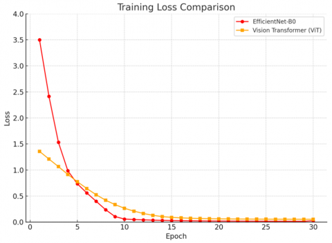 Figure 4. Comparative training accuracy and loss curves of EfficientNet-B0 and ViT