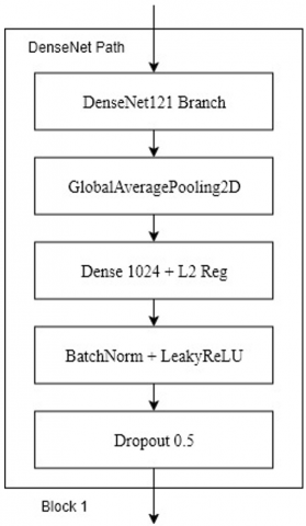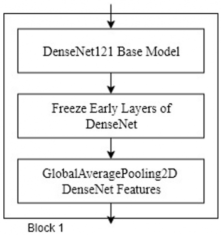 Figure 3. Block 1 of DenseNet121+Xception based hybrid model