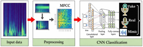 This work presents One-dimensional Convolutional Neural Network (1D CNN) model to recognize important characteristics in the audio data, with pooling layers to reduce complexity and prevent overfitting, and fully connected layers for final classification to three categories: "Real", "Fake", and "Mimic" using a Soft-Max activation function. The model is structured lightly architecture. This architecture is composed of the following layers each specific function done: