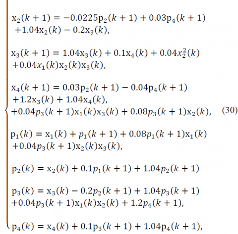 $u^{*}(\mathrm{k})=-0.15 p_{2}(k+1)+0.2 p_{4}(k+1)$ (31)