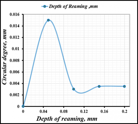Figure 8. The influence of depth of reaming on the circular degree, where, v=9.1 m/min; s=0.1 mm/r