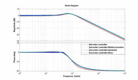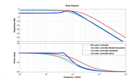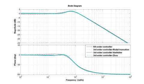 From Figure 8, we see that the bode diagram of the 3rd-order controller according to Zhou's balance truncation algorithm and the optimal Hankel norm approximation coincides with the bode diagram of the original controller.