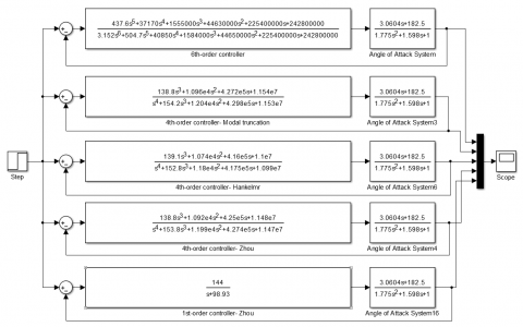 Figure 11. Simulink diagram of the control system using the 6th-order controller and the low-order controller