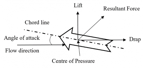 An aircraft's angle of attack is the angle between the direction of the gas (or liquid) flow velocity vector and the axial direction of the fuselage. For aircraft in flight, increasing velocity and angle of attack results in increased lift in the wings. At the same time, increasing the angle of attack also leads to an increase in induced drag. The aircraft's angle of attack (α) is controlled by the deflection on the control surface (Elevator) [1]. Figure 1 shows the aircraft's angle of attack as follows: