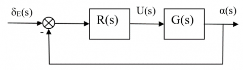 In Figure 2, $\delta_{\mathrm{E}}(\mathrm{s})$- Deflection of elevator as commanded by the pilot; α(s)- The desired angle of attack of the aircraft; G(s)- Transfer function between $\delta_{\mathrm{E}}(\mathrm{s})$ and α; R(s)- Controller; U(s)- Output of controller.