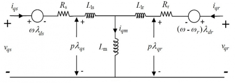 $\lambda_{q r}=\left(L_{l r}+L_m\right) i_{q r}+L_m i_{q s}=L_r i_{q r}+L_m i_{q s}$ (19)