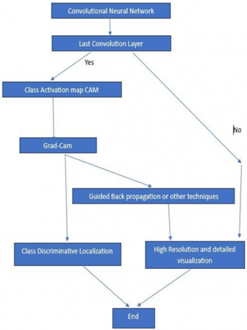 The flowchart (Figure 3) in the image illustrates the process of generating Class Activation Maps (CAMs) and how Grad-CAM enhances interpretability. Initially, an input image passes through a CNN, where multiple layers extract hierarchical features. The last convolutional layer plays a key role in spatial feature representation. By applying Class Activation Map (CAM) techniques, Grad-CAM produces heatmaps that highlight the most important regions influencing the model’s prediction. These heatmaps provide class-discriminative localization, allowing researchers and practitioners to assess whether the model focuses on the relevant image features [31, 32].