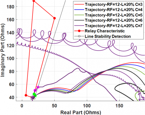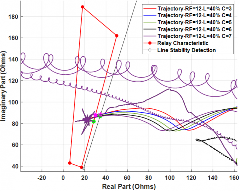 This work investigated in several scenarios the impact of fault resistance (RF) and location on the system responses. Measuring the moment of route entrance (trajectory) inside the relay characteristics reveals that the fault location and resistance affect the fault entry time that is acquired. The proposed scenarios can be summarized in the following points: