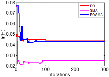 Table 3 summarizes the main parameter settings used for the SMA, EO, and EOSMA algorithms. To ensure a fair comparison, the population size and number of iterations were kept consistent across all three algorithms, set to 200 and 300, respectively. Each algorithm also includes specific parameters relevant to its design: for SMA, the parameter z was set to 0.03 as recommended in the original study; EO uses a control parameter jp, set to 0.5 based on prior literature. For EOSMA, the hybrid algorithm, we introduced the parameter k, which was empirically tuned, and the optimal value was found to be k = 0.2 based on validation performance.