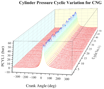 CNG combustion provides the advantage of lower carbon-to-hydrogen ratios, resulting in reduced CO₂ emissions when compared to diesel and gasoline engines. However, CNG combustion also experiences lower flame speeds and higher ignition energy requirements, which contributes to increased cycle-to-cycle variations (CCVs) [8].