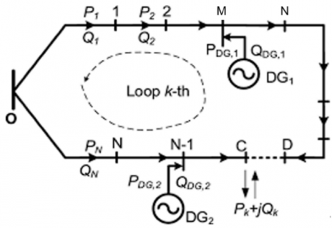 Consider a simple meshed distribution network containing a loop, as illustrated conceptually in Figure 1.