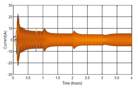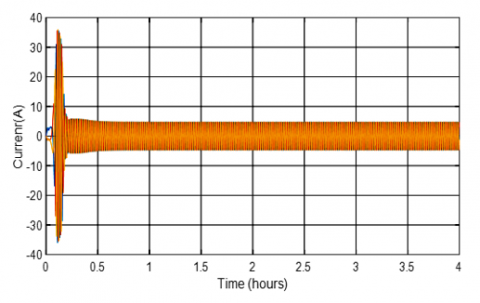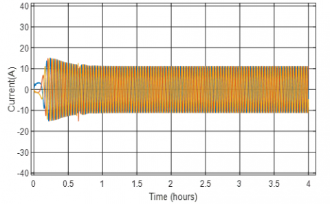 The graph shows that the induction motor is operating correctly and that the control technique successfully produces seamless and effective operation. Good quality power and low power losses are indicated by the sinusoidal form of the currents and the lack of noticeable harmonics.