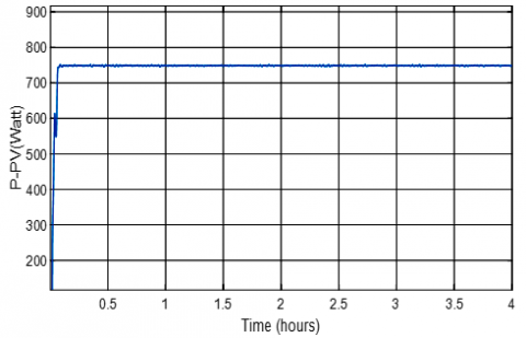 The power output of the PV system under various sun irradiation conditions is shown in Figure 11. Plotting the power output against time offers information on the efficiency of the MPPT algorithm and the system's operation.