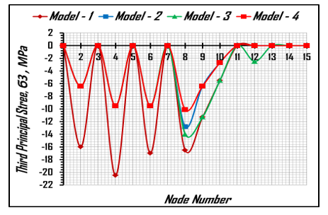 Figure 17. Relation between third principal stress $\left(\sigma_3\right)$ and node number of all models