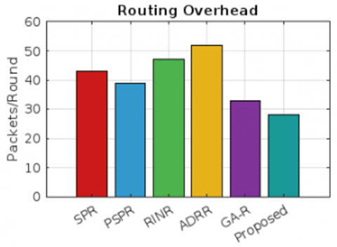 Finally, routing overhead was markedly decreased in the proposed method, an average of 28 control packets per round, only. The integration of hierarchical clustering and selective, data-driven route updates were effective for mitigating/avoiding unnecessary control message exchanging that spared bandwidth and minimized congestion as shown in Figure 5.