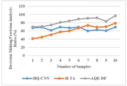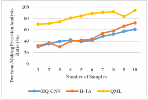 Figure 6. (a) Decision-making precision analysis is compared with AQE-DF, (b) Decision-making precision analysis is compared with QML