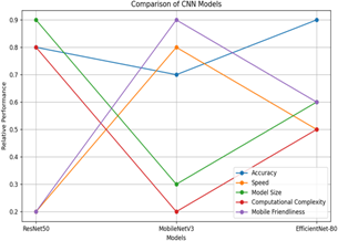 Figure 6. Three-way CNN model comparison: ResNet50, EfficientNet-B0 vs. MobileNetV3 performance