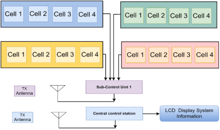 The system under consideration is intended for control of a distributed photovoltaic solar installation by splitting the solar field into a number of manageable areas. Multiple PV cells or panels per sector for fault detection and localization at a granular level. The system adopts a distributed structure in which the data inside the segment of each PV unit is measured and processed by a local sub-control unit and then sends the wireless data to a central control station for further comprehensive analysis and failure diagnosis. The general system architecture is depicted in Figure 1, where we can observe that some functional blocks come out, such as PV arrays (divided into sectors), sub-control units (one per sector), wireless transceivers (NRF24 P-modules), and a central control station. The sub-control unit that includes a microcontroller and an FPGA is used to send a test signal to the PV cells, measure the response, encode the data, and send it wirelessly. The encoded data is transmitted to the central control station, which decodes the data and further processes the data for fault identification and location. This modular approach not only simplifies deployment and maintenance but also enhances the system's robustness by enabling localized fault diagnosis while maintaining centralized monitoring capabilities.
