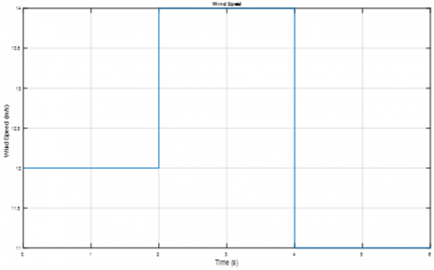 The electromagnetic torque, aerodynamic power, power coefficient, and tip speed ratio simulated under a step wind profile are presented in the Figure below.
