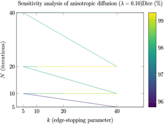 Table 3. Representative sensitivity results for anisotropic diffusion filtering parameters