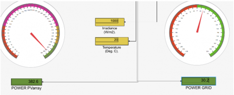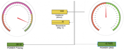 The readings of power for both the PV array and the grid for many temperature states are given in Figure 12.