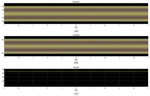Figure 11. Load side (a) Voltage, (b) Current, (c) Power