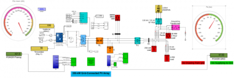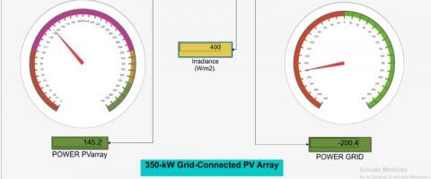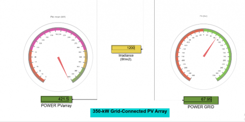 A 350 kW solar PV system is considered small-scale distributed generation which is located behind the meter this size of plant always installed with the buildings any excess power of building capacity is exported at the local distribution grid, through a process called PV and grid powers monitoring panel. This plant is connected to a lower voltage line.