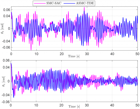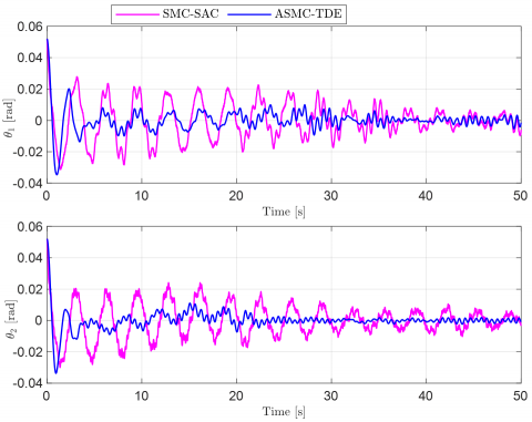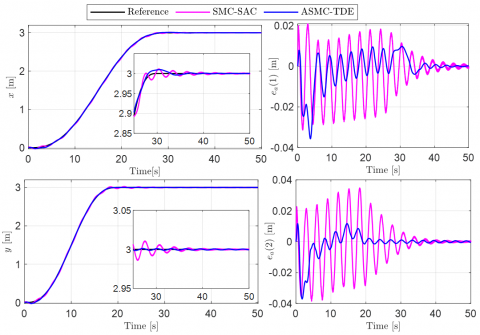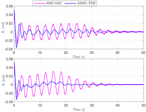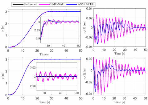 By applying the Lyapunov stability principle, it is ensured that the system is stable and the sliding surface $\mathbf{s}$ reaches zero, $\mathbf{s} \rightarrow 0$ as $t \rightarrow \infty$. This implies that $\dot{\mathbf{e}}+\boldsymbol{\Gamma} \rightarrow 0$. For this firstorder differential equation, the solution is expressed as $e_i= e^{-\Gamma_i t} \rightarrow 0$.