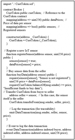 2. Broker Contract: Broker contract, shown in Figure 2, is responsible for handling the registration of sensors, processing transactions, and managing data exchanges between buyers and sellers. Specifically, the buyData function performs the validation of transactions.