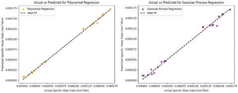 The Gaussian Process Regression Machine Learning model found to effective in prediction of wear rate with R2 > 0.96 of L-PBF manufactured materials [31]. ANN and LSTM are effective for capturing nonlinear time evolution of wear when time‑series sensors are available, but require more training data and careful regularization [32, 33]. But these are used for milling and composite wear studies.