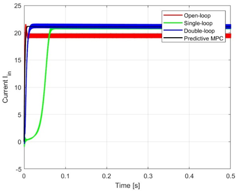 Figure 8. Input current for different control methods. The open-loop case is a benchmark (worst-case) and performs poorly compared to closed-loop method