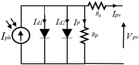 Figure 2. Equivalent two-diode circuit of PV module