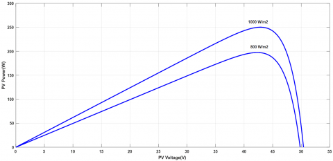 Figure 5. Typical power-voltage curve of the PV module