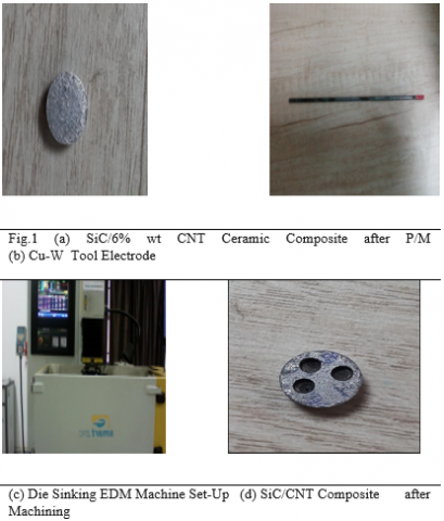 The SMART ZNC Die Sinking EDM machine has been used for machining the SiC/CNT Ceramic matrix Composite. Commercial grade EDM oil (specific gravity 0.763, flash point 94˚C) has been used as dielectric fluid. The Flushing Pressure has been considered at 10Kgf/cm2. In the Present Study SiC Ceramic has been reinforced with 6% Carbon Nano tube Nano particle by Powder Metallurgy Process. The Electrical Conductivity has been reached about 119 S/m which is sufficient to machine the ceramic matrix by EDM.