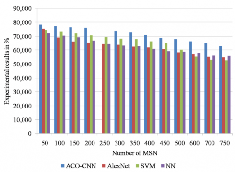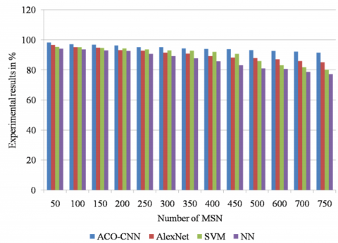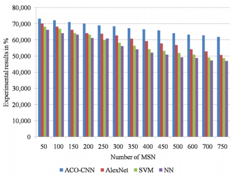 Figure 12 shows the graphical comparisons of the proposed ACO-CNN method with other existing methods. It is well known that, the proposed ACO-CNN method obtains higher performance efficiency with respect to various performance parameters than the other existing deep and machine learning classification algorithms in this paper.