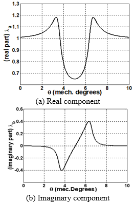 where $B_{r I}$ and $B_{\theta I}$ are the radial and tangential flux density components in the less slot air gap. $\lambda_{a}$ and $\lambda_{b}$ are the real and imaginary parts of the complex relative air gap permeances.